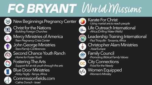 Family Church supports a number of missions through our outreach program on a monthly basis. We know that God has called these missionaries to spread the Good News all over the world, and we specifically set aside 10% of our general fund to assist them in their task!
